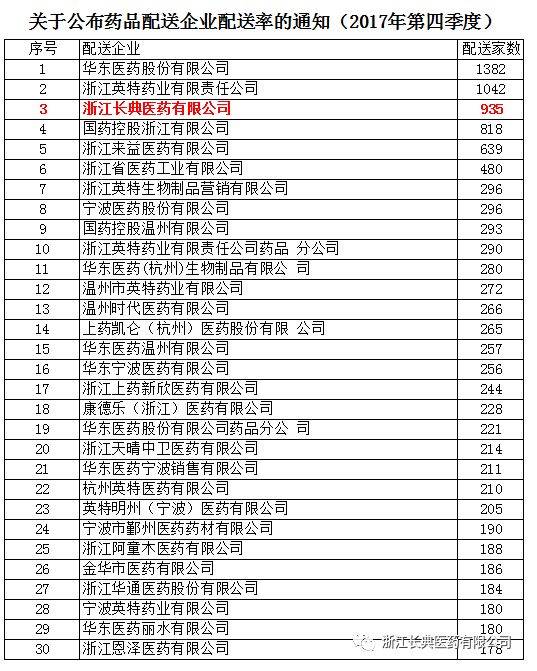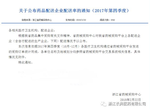 關(guān)于公布藥品配送企業(yè)配送率的通知(2017年第四季度)