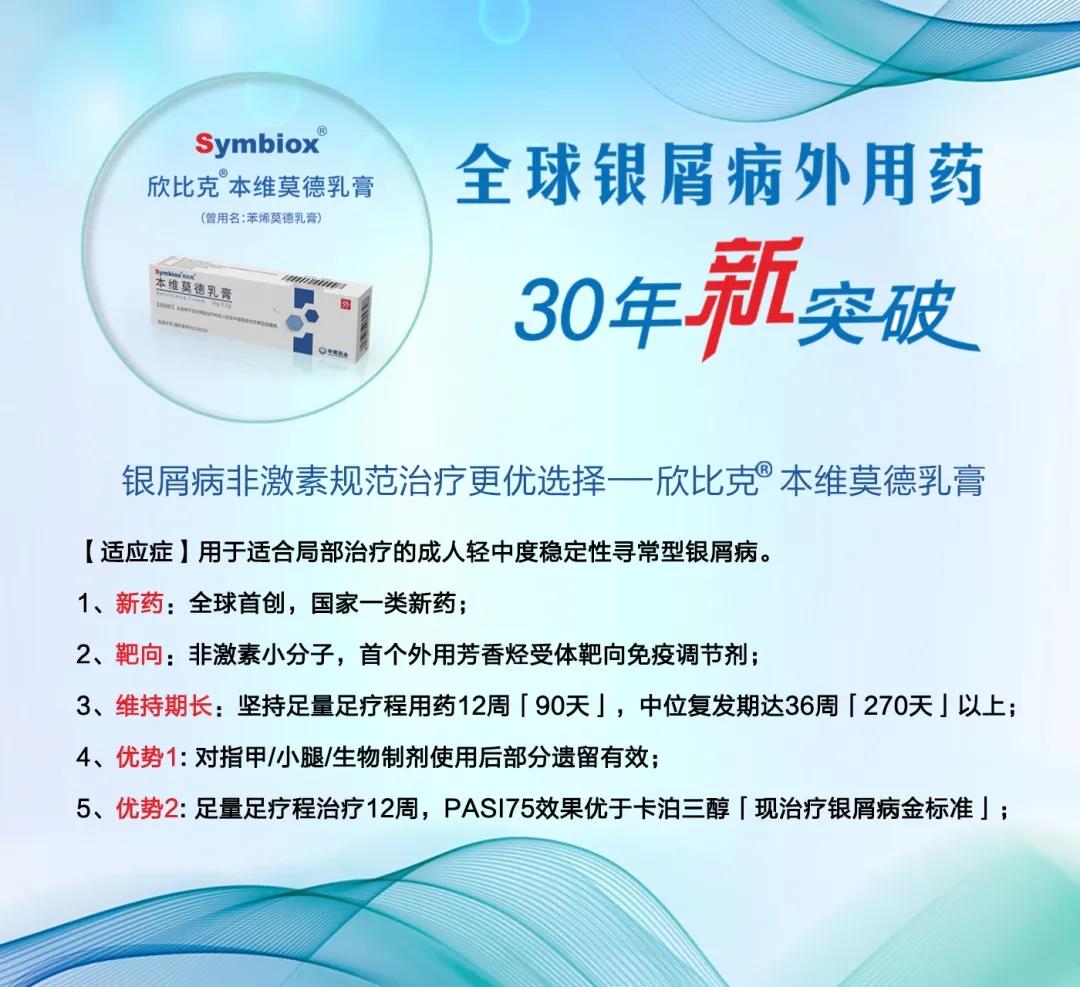 1、本維莫德乳膏是全球首創的非激素小分子化學藥,是國家1類新藥,能夠調節機體免疫功能狀態,改善銀屑病相關癥狀。本維莫德乳膏是銀屑病領域近30年來國內首個獲批的全球首創“1類新藥“,擁有完整自主知識產權、國家專利保護,是國家“重大新藥創制”科技重大專項成果。