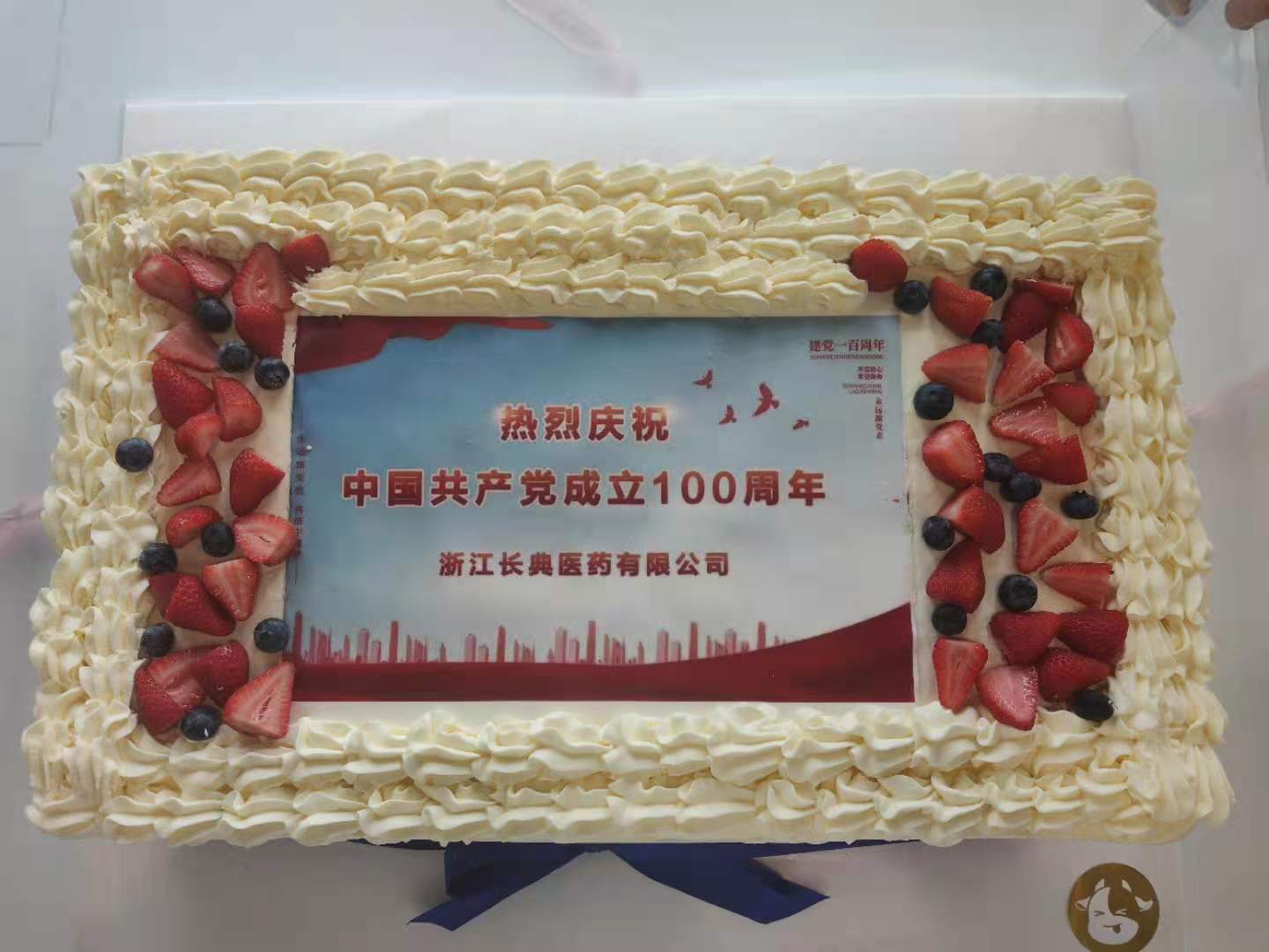 7月1日下午,一場特殊的政治生日在浙江長典醫藥拉開序幕。公司全體員工齊聚一堂,共切建黨百年蛋糕,以此歡慶中國共產黨成立100周年。