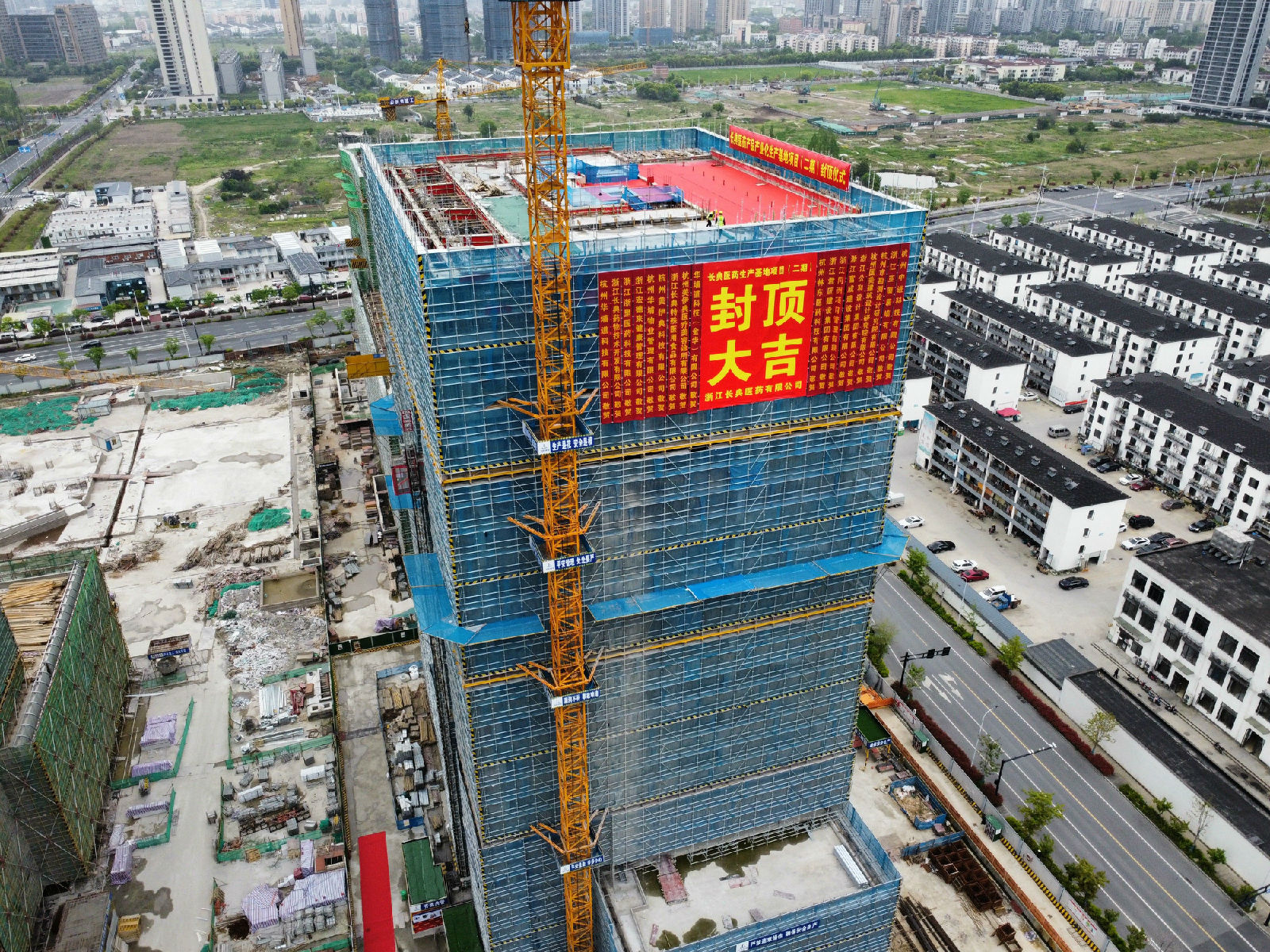 發布時間:2023-04-11 12:00:00 點擊率:1051 通訊員 :4月11日上午,長典大廈歷時2年多建設,終于迎來結頂儀式。浙江長典醫藥有限公司董事長陳宇東、總裁周興初、副總裁、工會主席廖衍、黨支部書記、工程部經理徐國興、財務總監熊茜等管理人員到場出席,為長典大廈主體結構建設畫上圓滿句點。
